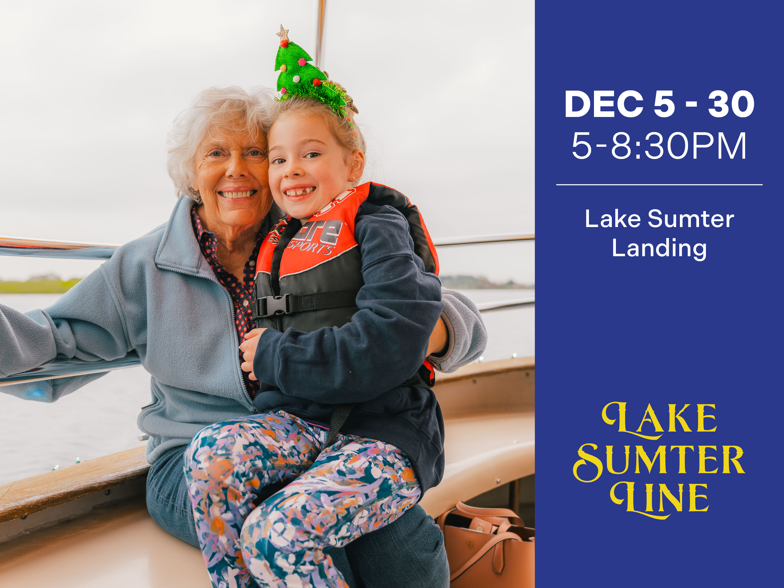 The Lake Sumter Line is celebrating the season with Holiday Themed boat cruises during the month of December. Join a nightly lighted cruise or pick one of the themed cruises for more holiday spirit!