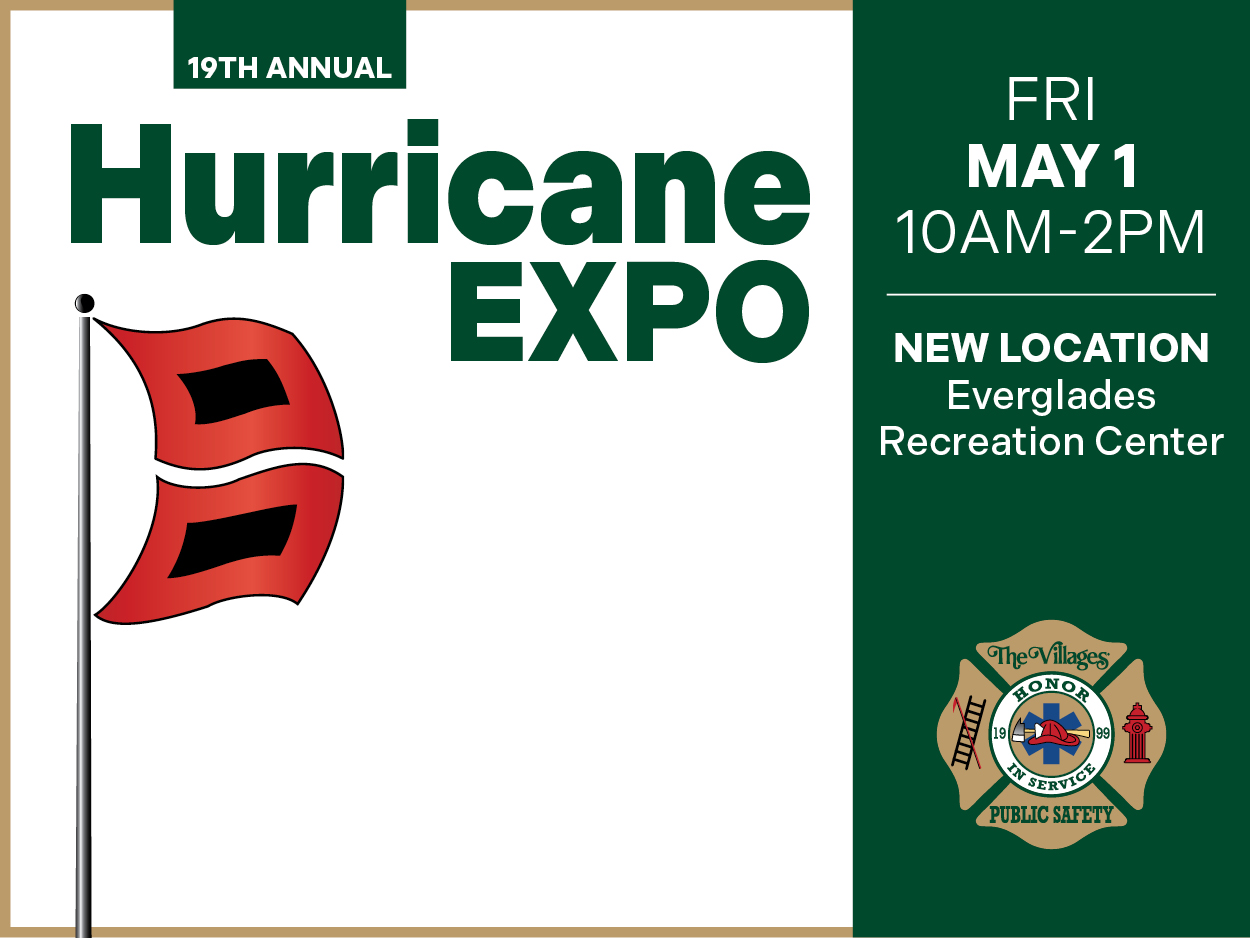 The Villages Public Safety Department invites residents to attend the 19th Annual Hurricane Expo to learn how to prepare for storm season and understand what to do if a hurricane impacts our area.